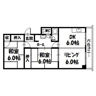 2LDK(54.64m²)└ LDK12.000×和室6.000×和室6.000