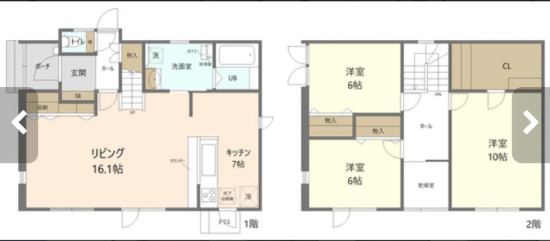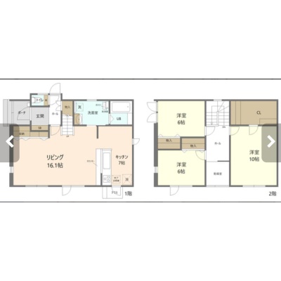| 間取り | 3LDK1階:LD16.1帖 K7帖 / 2階:洋室10帖 洋室6帖 洋室6帖 |