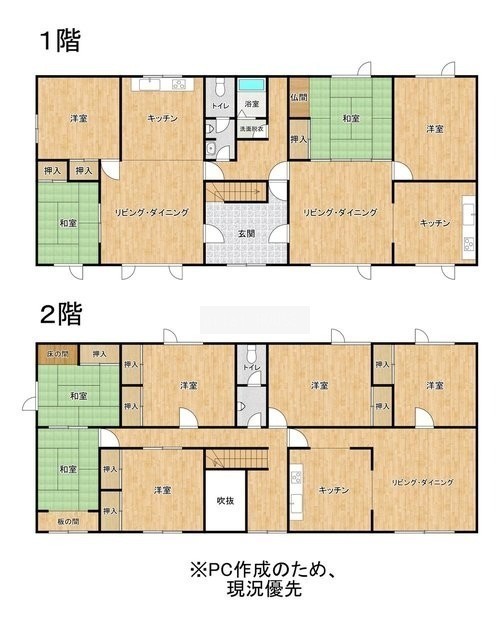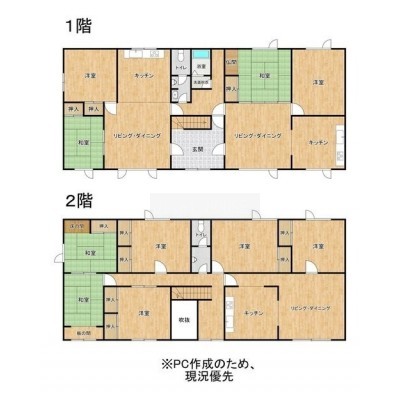 | 間取り | 7DK以上1階:LD10帖 K4帖 和室6帖 洋室8帖 LD10帖 K4帖 和室8帖 洋室6帖 / 2階:和室6帖 和室6帖 |