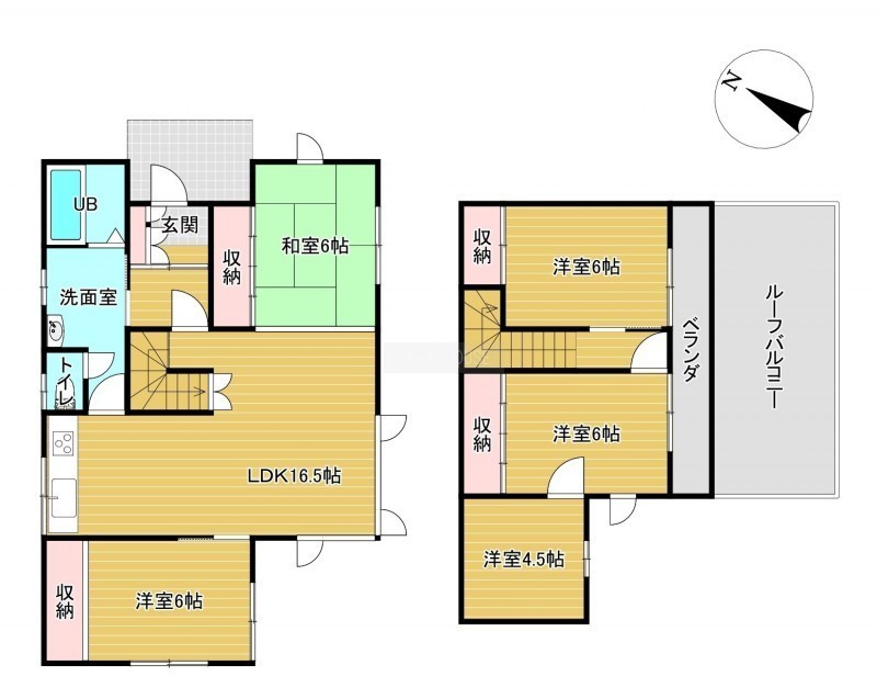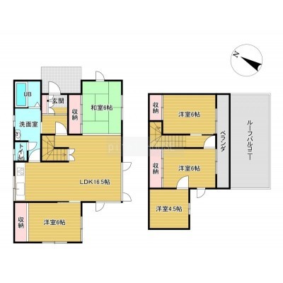 | 間取り | 5LDK1階:LDK16.5帖 洋室6帖 和室6帖 / 2階:洋室6帖 洋室6帖 洋室4.5帖 |