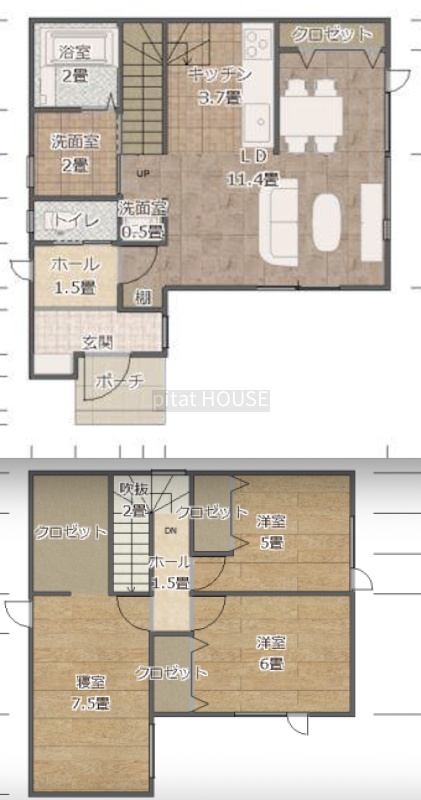 | 間取り | 3LDK1階:LDK15.1帖 / 2階:洋室5帖 洋室6帖 洋室7.5帖 |
