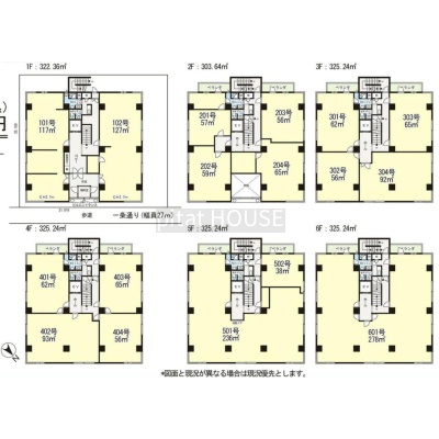 建物の階建 地上6階建 間取り ワンルーム×17戸 駐車場 接道状況 一方 - 北東側幅27.00mの公道に21.80m接道 位置指定:無