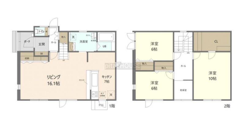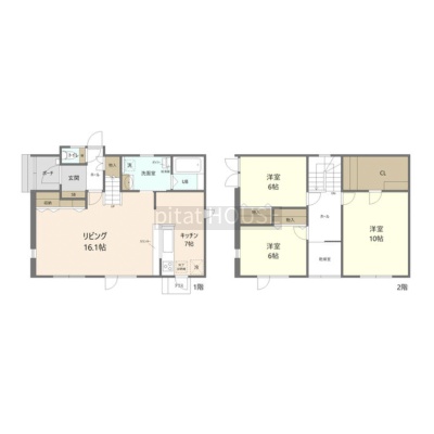 | 間取り | 3SLDK1階:LDK23帖 / 2階:洋室10帖 洋室6帖 洋室6帖 |