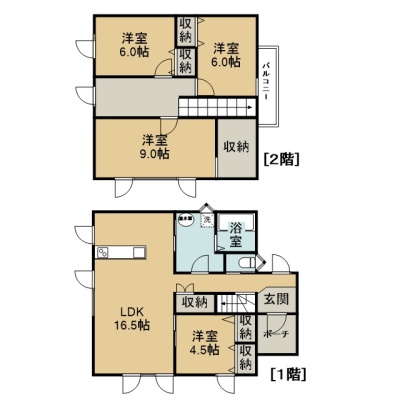 | 間取り | 4LDKLDK16.5帖 洋室4.5帖 洋室9帖 洋室6帖 洋室6帖 |