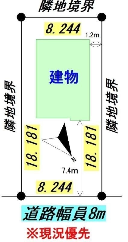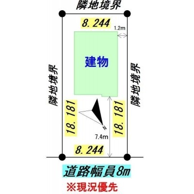 建物の階建 地上2階建 主要採光面 北東 構造 木造 接道状況 一方 - 北西側幅8.00mの公道に8.24m接道