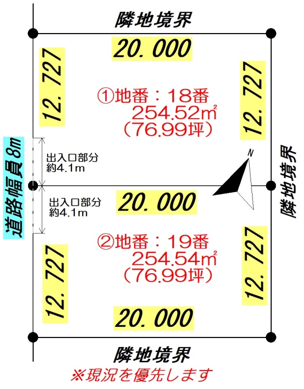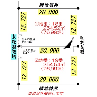 総区画数2区画/全2区画 接道状況 一方 - 南西側幅8.00mの公道に12.72m接道