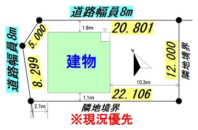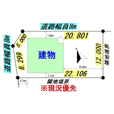 建物の階建 地上2階建 主要採光面 南西 構造 木造 接道状況 角地 - 北東側幅8.00mの公道に20.80m接道