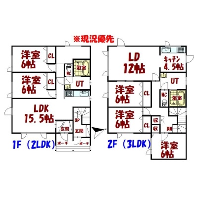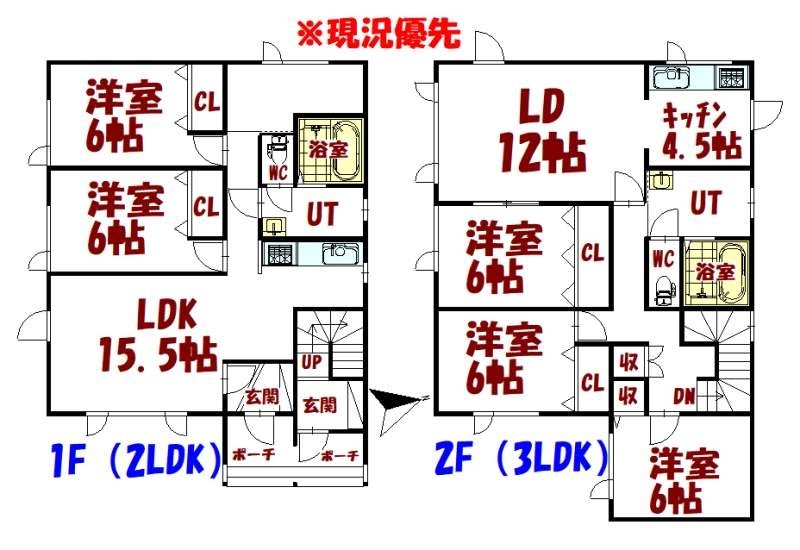 ここに注目!☆人気エリアの2戸入り(2LDK・3LDK)オーナーチェンジ☆ 1坪浴室完備でゆったりした間取りの投資物件! ●境界標非明示、全て現状渡し条件での販売価格となります。 ●1F (2LDK)~家賃¥50,000円/月、2F(3LDK)~家賃¥55,000円/月 で現在入居中。 現況年収¥1,260,000円、表面利回り14% ●相続登記完了後の売買となりますのでお引渡しまでに時間を要する 可能性があります。 ●固定資産・都市計画税~¥65,300円/R7年税額 ●大規模集客施設制限地区 ・ 宅地造成等工事規制区域