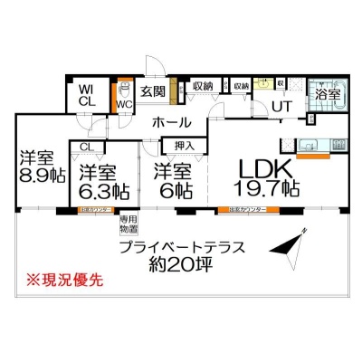3LDK(98.74m²)└ 1階:LDK19.7帖 洋室8.9帖 洋室6.3帖 洋室6帖