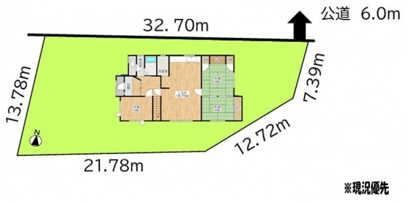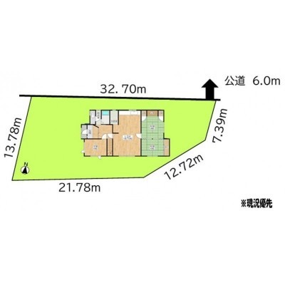 建物の階建 地上2階建 主要採光面 構造 木造 接道状況 - 北側幅6.00mの公道に32.70m接道