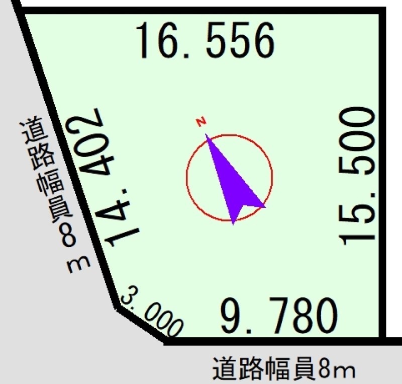 - 南西側幅8.00mの公道に14.40m接道