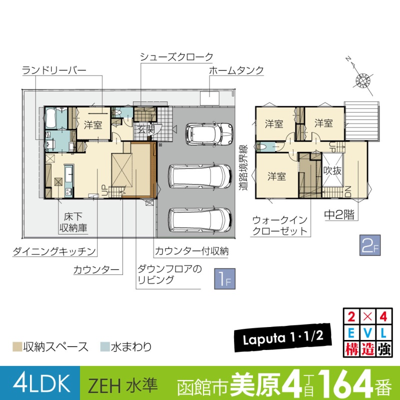 函館市美原4丁目|中2階|ダウンフロアのリビング|ZEH水準|