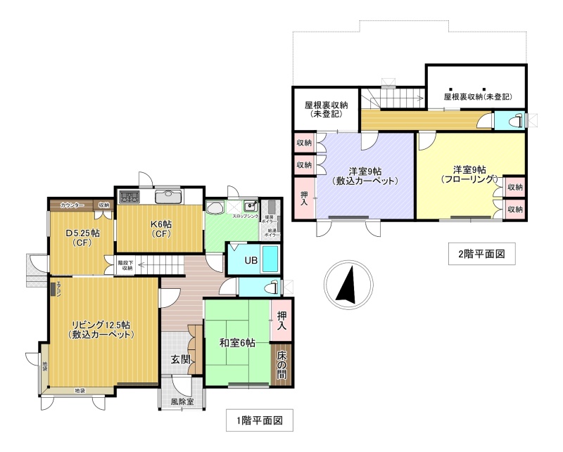 | 間取り | 3LDK1階:L12.5帖 D5.25帖 K6帖 和室6帖 / 2階:洋室9帖 洋室9帖 |