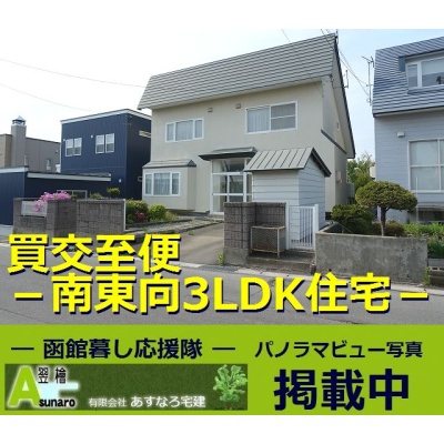 ここに注目!■函館市桔梗3丁目・南東向き3LDK住宅のご紹介です。JR桔梗駅まで徒歩6分、バス停まで徒歩4分と、通勤・通学に便利な立地。郵便局、銀行、ドラッグストア、スーパー、コンビニなど生活関連施設も充実しております■間取りは広々とした3LDK。南西向きの陽当り良好なリビング、全居室収納に加え、床下収納、小屋裏収納、外部物置など収納スペースが豊富で、お部屋をすっきりと保てます■暖房ボイラーは各室パネルヒーターのほか、リビング、キッチンは床暖房を完備、温水洗浄トイレ2ヶ所など充実の設備も嬉しいポイント。駐車場は1台分ございますが、敷地内工事で増設も可能です。■物件に関することは「㈲あすなろ宅建☎0138-45-2103(よいふどうさん)」までお気軽にお問い合わせください☆★☆