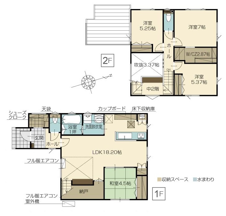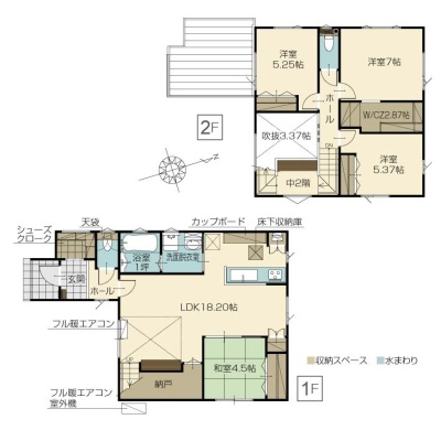 | 間取り | 4LDK1階:LDK18.2帖 和室4.5帖 / 2階:洋室7帖 洋室5.37帖 / その他:洋室5.25帖 |