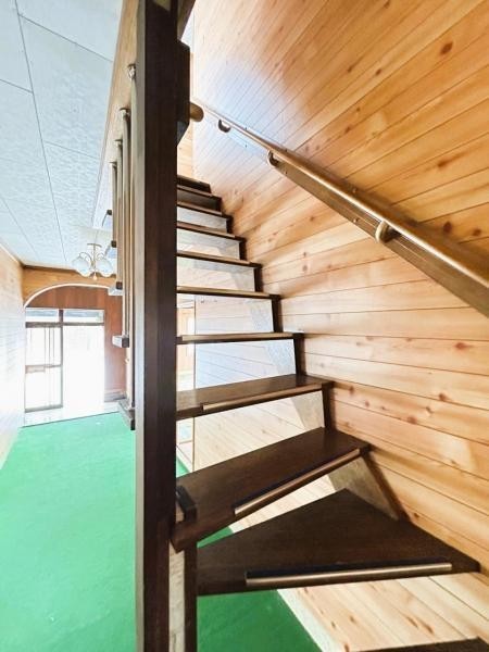 【リフォーム中】階段の壁・天井はクロスの張替えをし、照明器具
