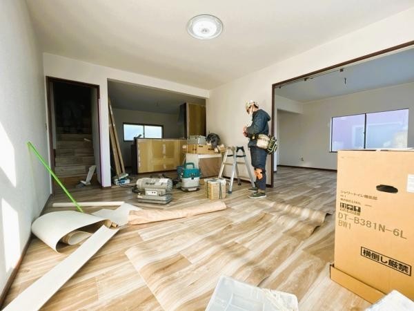 【リフォーム中】LDK別角度写真です。大きな窓で明るいリビン