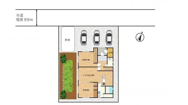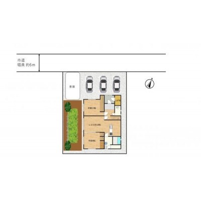【敷地内配置図】車庫1台と住宅前に車種によって2~3台駐車可