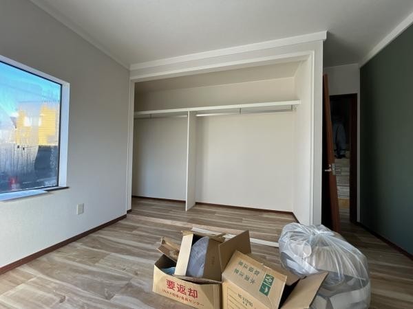 【リフォーム中】2階北西側洋室の収納は棚とポールを設置し、オ
