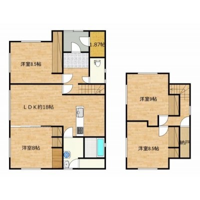 【間取図】1階2部屋、2階2部屋と納戸の4SLDK住宅です。