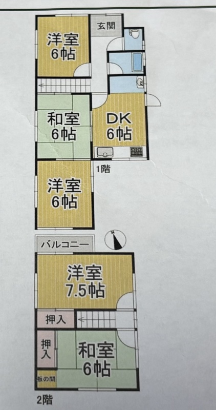建物の階建 地上2階建 構造 木造 間取り 5DK 駐車場 あり 駐車場台数:1台バルコニー あり接道状況 一方 - 南側幅4.00mの公道に接道