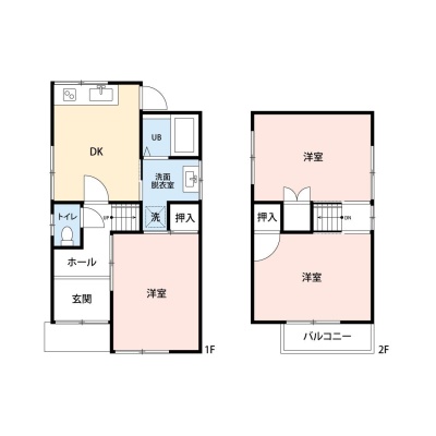 建物の階建 地上2階建 構造 木造 間取り 3DK 駐車場 あり 駐車場台数:1台車種による