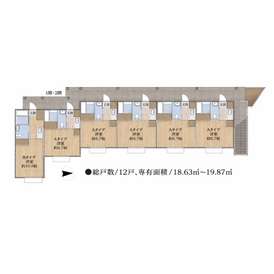 | 面積 | 建物:226.06m² (68.38坪)/ 土地:310.87m² (94.03坪)(公簿) 専有:最小18.63m² (5.63坪)~最大19.87m² (6.01坪) |