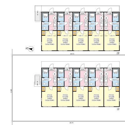 建物の階建 地上2階建 間取り 1K×10戸 駐車場 接道状況 一方 - 北側幅6.00mの公道に12.00m接道 位置指定:無
