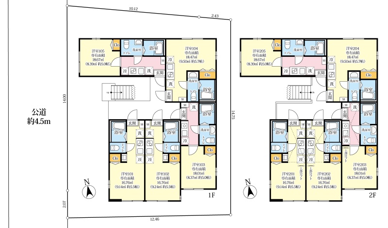 建物の階建 地上2階建 間取り 1K×4戸、ワンルーム×6戸 駐車場 なし接道状況 一方 - 北西側幅4.50mの公道に16.00m接道