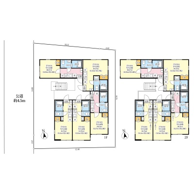 | 面積 | 建物:187.13m² (56.6坪)/ 土地:191.9m² (58.04坪)(公簿) 専有:最小16.76m² (5.06坪)~最大18.67m² (5.64坪) |