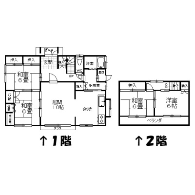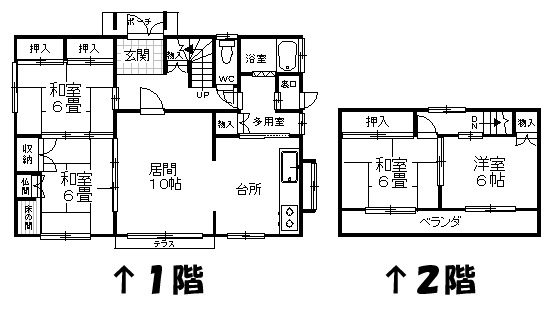 | 間取り | 4LDK1階:L10帖 和室6帖 和室6帖 / 2階:洋室6帖 和室6帖 |