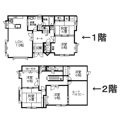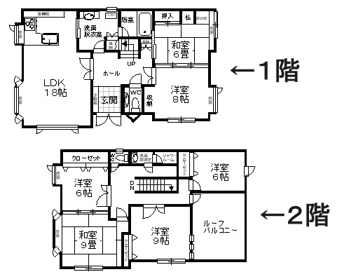 | 間取り | 6LDK1階:LDK18帖 洋室8帖 和室6帖 / 2階:洋室6帖 和室9帖 洋室9帖 洋室6帖 |