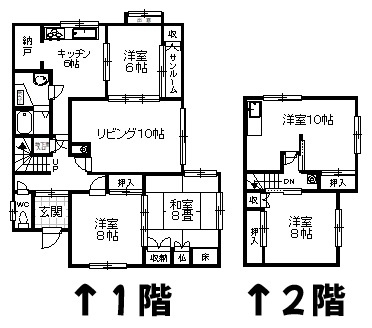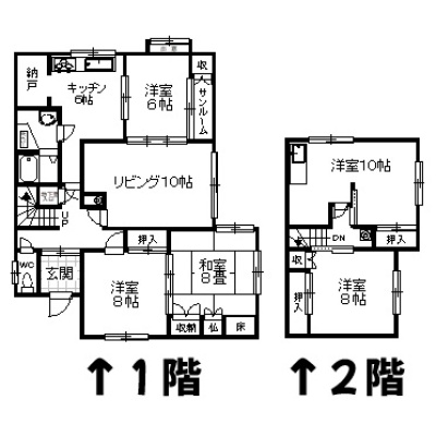 | 間取り | 5LDK1階:L10帖 K6帖 洋室6帖 洋室8帖 和室8帖 / 2階:洋室10帖 洋室8帖 |
