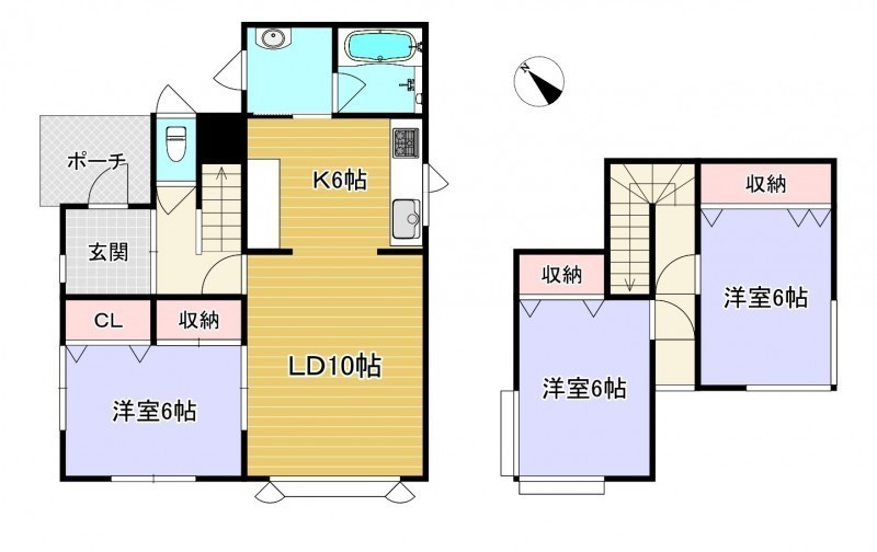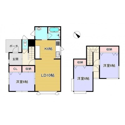 | 間取り | 3LDK1階:LDK16帖 洋室6帖 / 2階:洋室6帖 洋室6帖 |