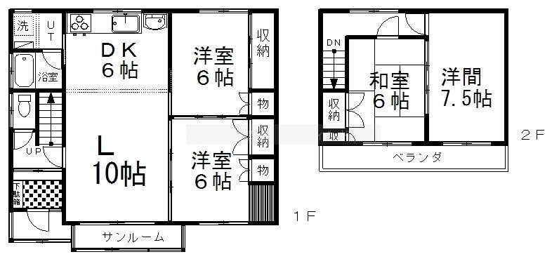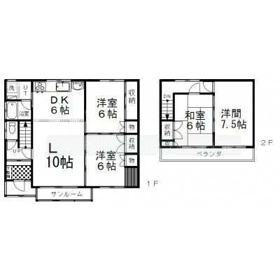 建物の階建 地上2階建 構造 木造 間取り 4LDKL10.0帖 DK6.0帖 洋室6.0帖×2 和室6.0帖 洋室7.5帖 駐車場 あり 駐車場台数:2台接道状況 角地 - 北西側幅7.70mの公道に17.40m接道
