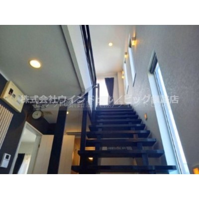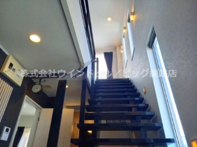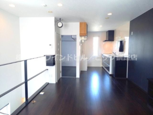 ここに注目!高台に立地する白と黒を基調としたスタイリッシュな2LDKのお家です!木の引き戸を開けると特にバイク好きな方にはたまらないフリースペースが広がります!玄関を入った先にはお洒落な居住空間♪都市ガスエコジョーズ採用住宅!2階寝室にはエアコンも付いているので夏も快適に過ごせます!
