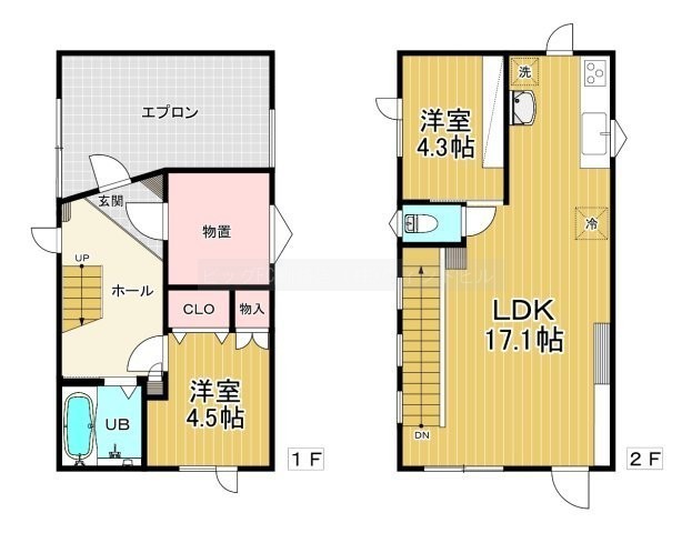 | 間取り | 2LDK洋室4.5帖 LDK17.1帖 洋室4.3帖 |