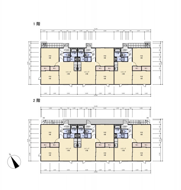 建物の階建 地上2階建 間取り 2LDK×6戸 駐車場 あり 駐車場台数:10台接道状況 一方 - 北東側幅8.00mの公道に26.44m接道