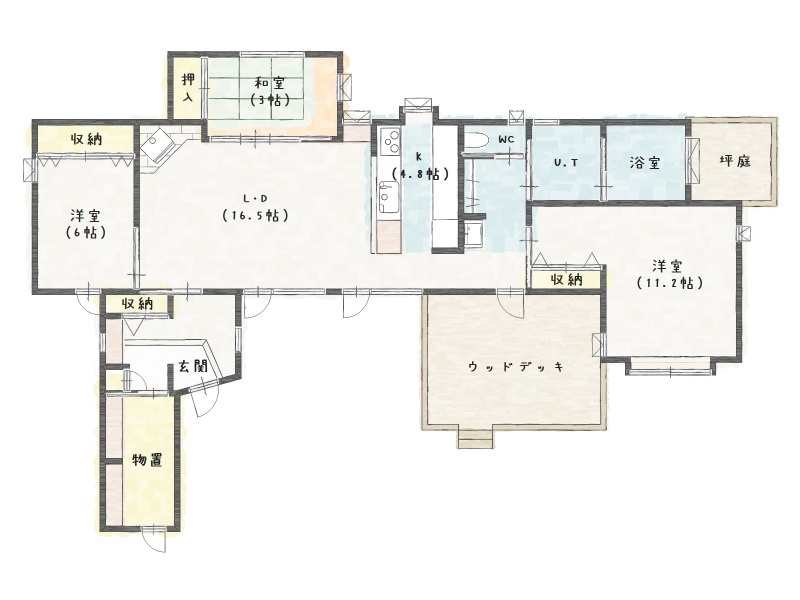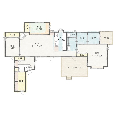 | 間取り | 3LDK1階:LD16.5帖 K4.8帖 洋室11.2帖 洋室6帖 和室5.3帖 |