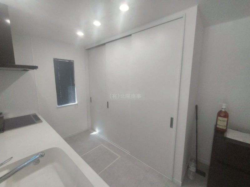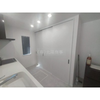 キッチン背後には扉付きの収納スペース