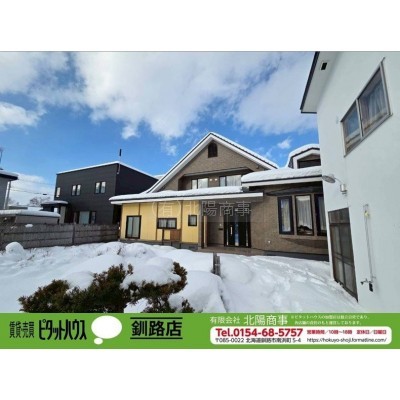ここに注目!土地は南向きで広々とした約134坪の敷地。建物は大きな三角屋根が特徴。室内には茶道に必要な茶室、水屋、待合がございます♪是非茶室を残し、活かせると売主様も喜ばれます(^^♪一世帯でお住みの場合はキッチンを1つにし、12.6帖のお部屋を洋室に変更をすれば3LDK+茶室となります。家族構成によってリフォームをお考え下さい。敷地内の白い建物は事務所として利用していました、1階部分のシャッターは駐車スペースです(建物は未登記)。内覧のご予約は【ピタットハウス釧路店0154-68-5757】まで♪