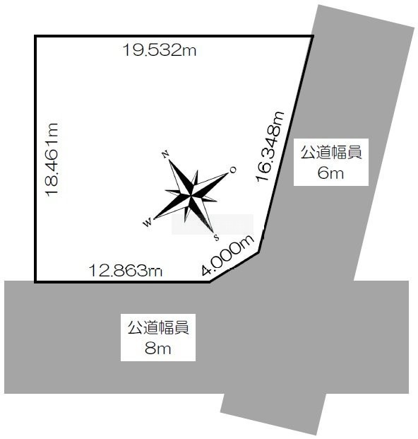 総区画数-/- 接道状況 角地 - 南東側幅6.00mの公道に16.30m接道