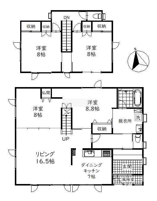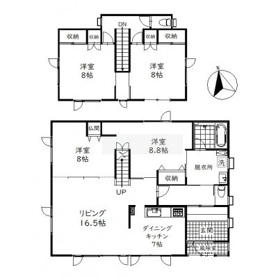 | 間取り | 4LDKL16.5帖 DK7.0帖 洋室8.0帖 洋室8.8帖 洋室8.0帖×2 |