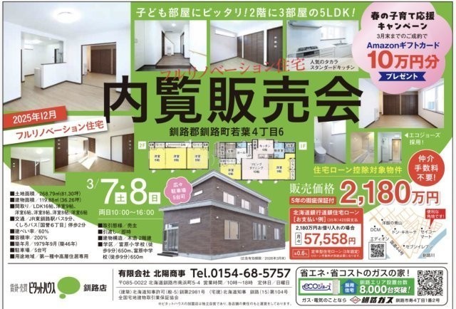 【オープンハウス開催!!3月7日・8日の2日間!】釧路町若葉4丁目 フルリノベーション済中古住宅