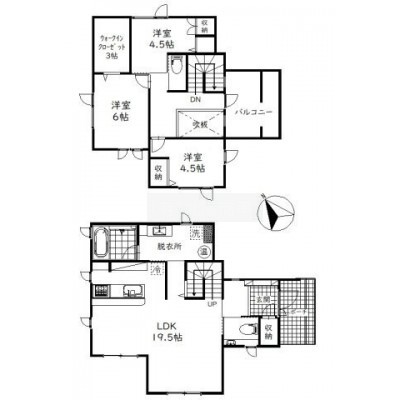 | 間取り | 3SLDKLDK19.5帖 洋室6.0帖×2 S(納屋)3.0帖×2 洋室4.5帖×2 |