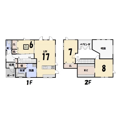 | 間取り | 3LDK1階:LDK17帖 洋室6帖 / 2階:洋室8帖 洋室7帖 |