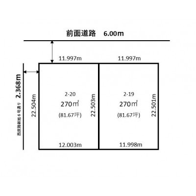 総区画数-/- 接道状況 角地 - 北西側幅6.00mの公道に23.99m接道