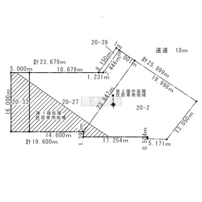 総区画数-/- 接道状況 一方 - 北側幅18.00mの公道に25.99m接道