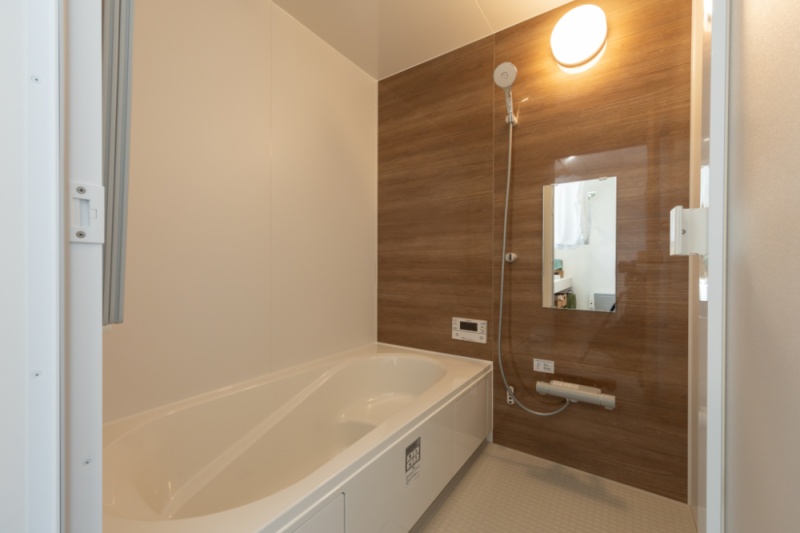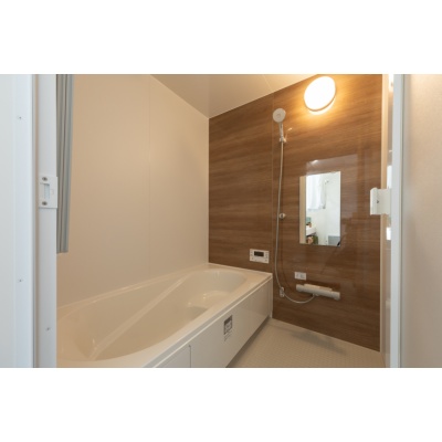 【浴室】 足元がヒヤッとしない設計で、家族みんなが快適に使える清潔感あふれるバスルームです。 (2025年10月撮影)