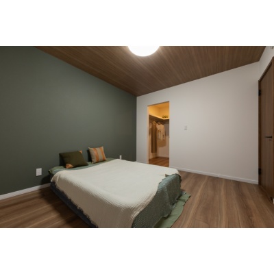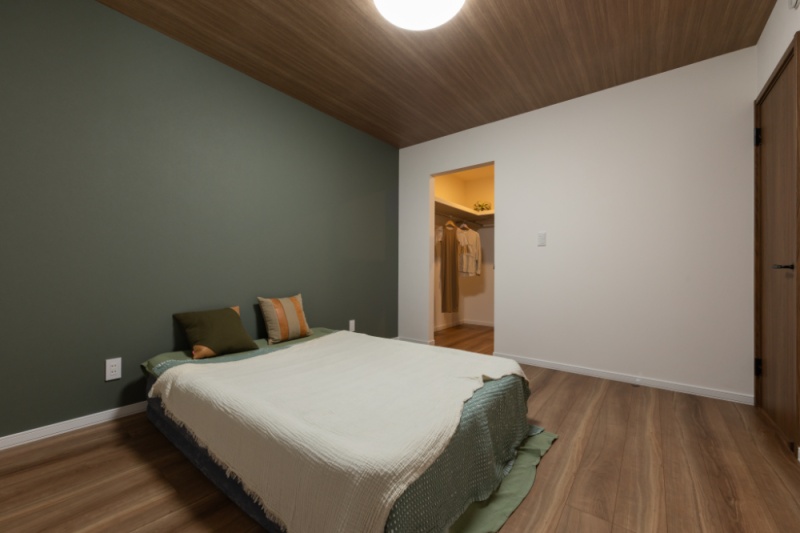【主寝室】 ホワイト×ブラウン×グリーンの配色で落ち着いた心地よい雰囲気の洋室。 (2025年10月撮影
